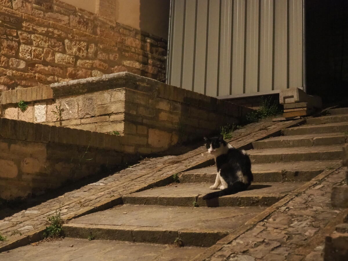 ポルタ・コンソラーレへと戻る近道、Angelo 通りの路地裏にも猫たちが住んでいました。