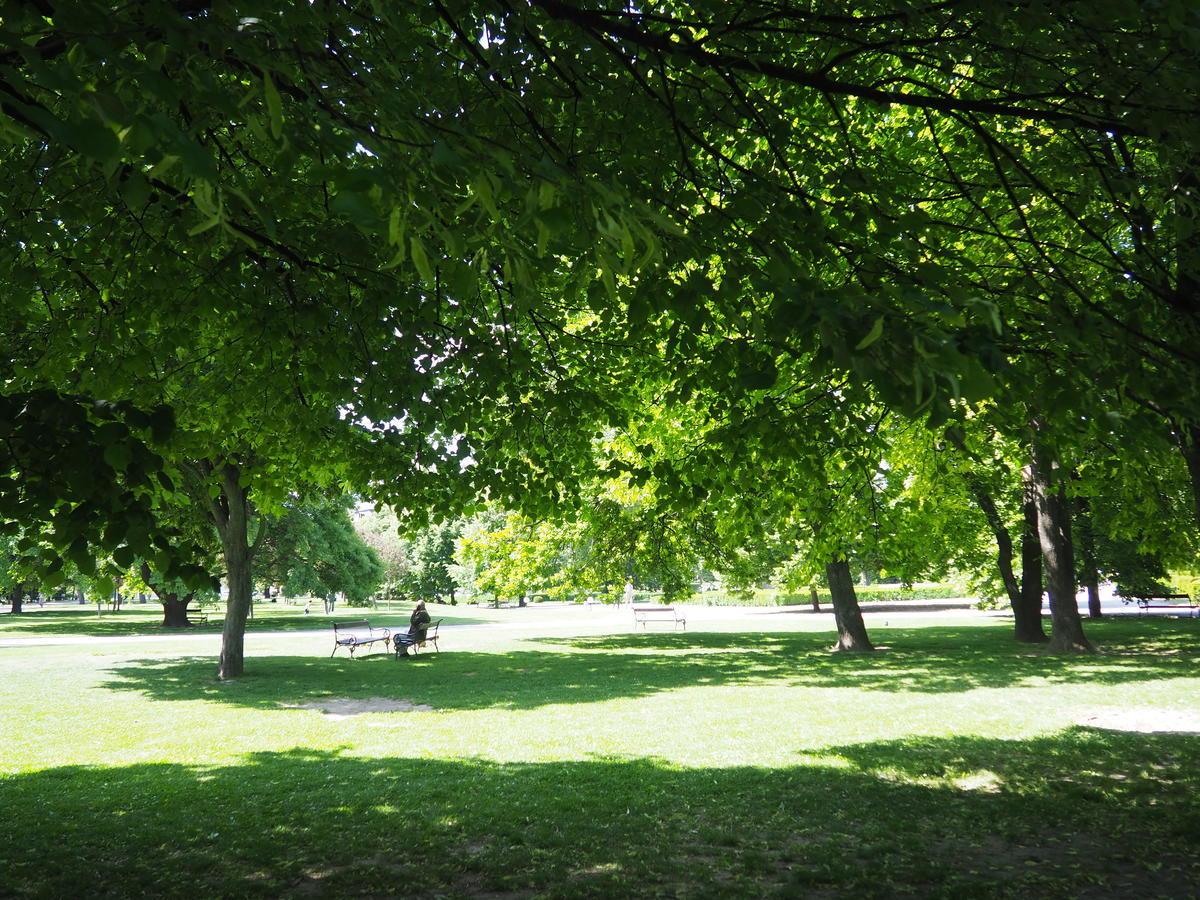 本を片手にのんびり休みたくなる、緑豊かな公園。