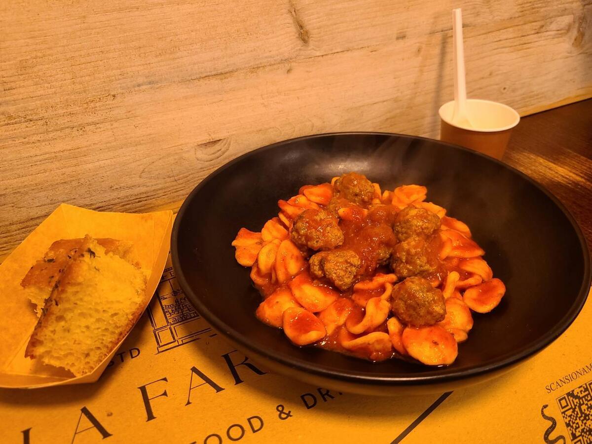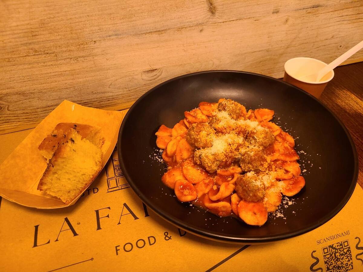 トマトソースで絡めたオレッキエッテとミートボールの相性は抜群😋🍴